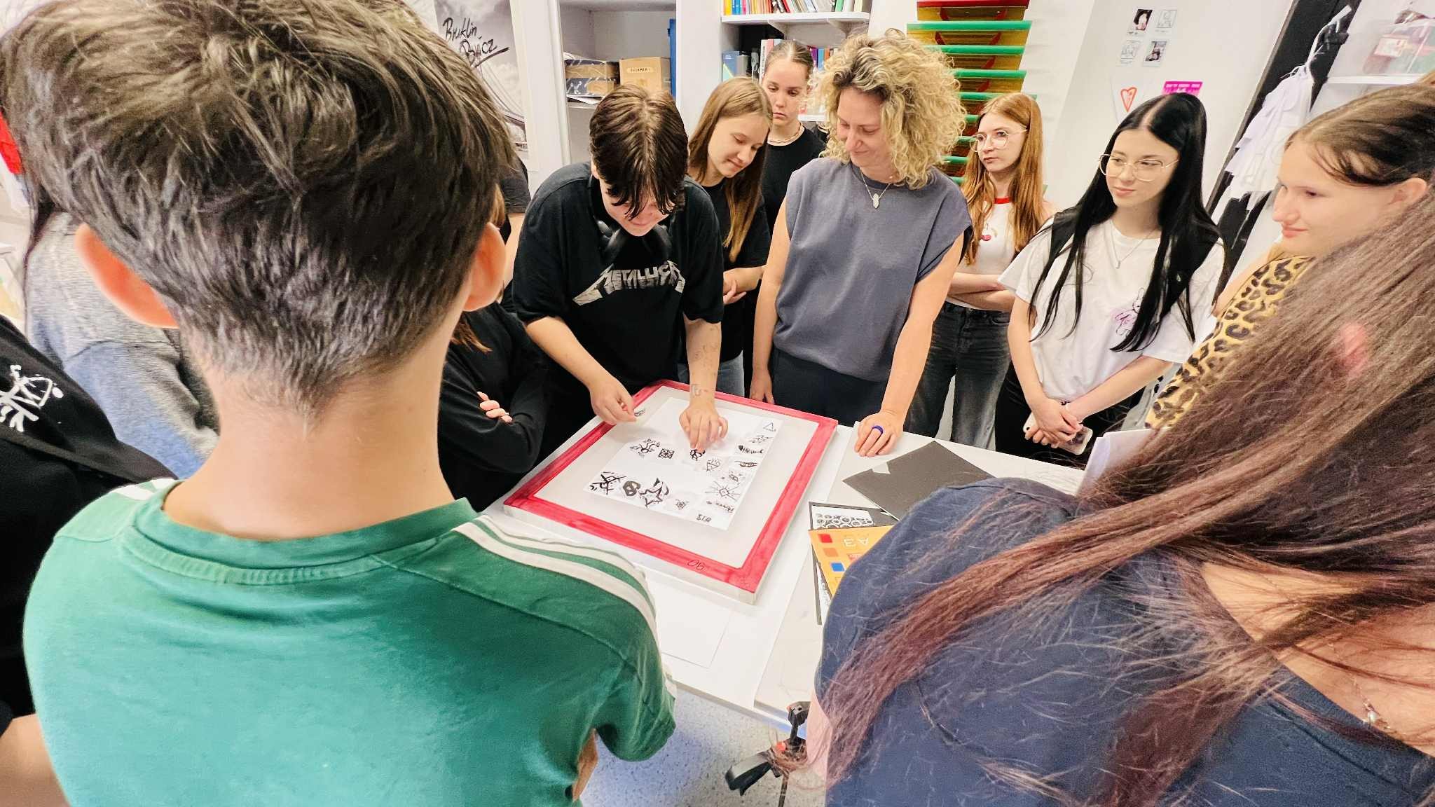 Klasa 1F Technikum Fotografii i Multimediów wybrała się dziś na warsztaty do BGSW w Słupsku! Podczas zajęć uczniowie poznali technikę sitodruku, stworzyli własne symbole i wspólnie wykonali flagę. To była świetna okazja nie tylko do rozwijania kreatywności i nauki nowych umiejętności , ale też do integracji i budowania zespołowej atmosfery. Zapraszamy do obejrzenia fotorelacji z tego twórczego dnia!